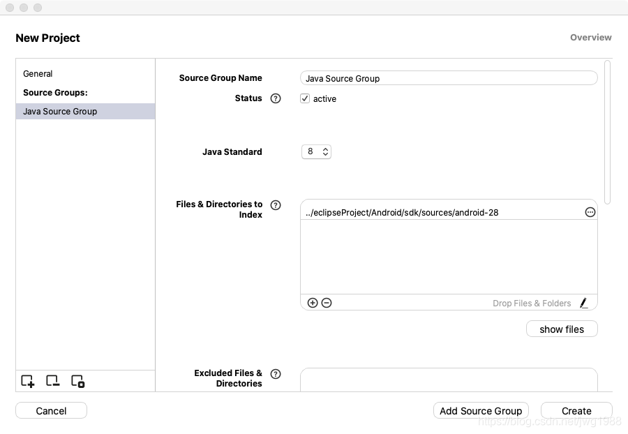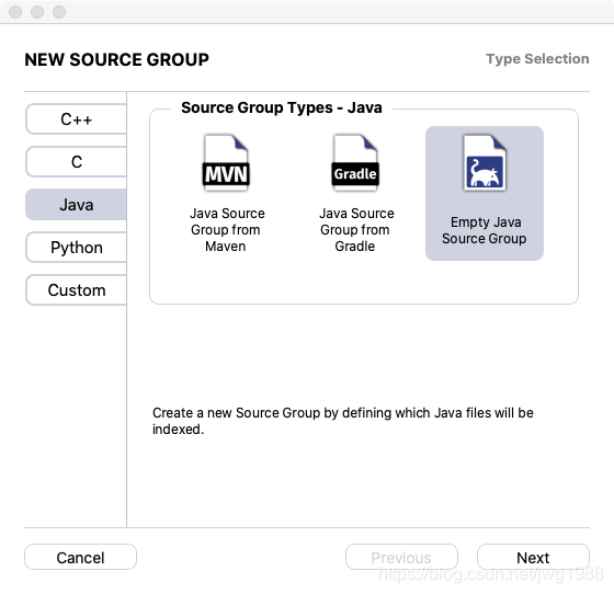 1. 点击 Add Source Group,选择 Empty Java Source Group: