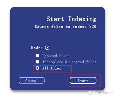 选择 All Files, 点击 Start 按钮开始索引,等待一段时间。