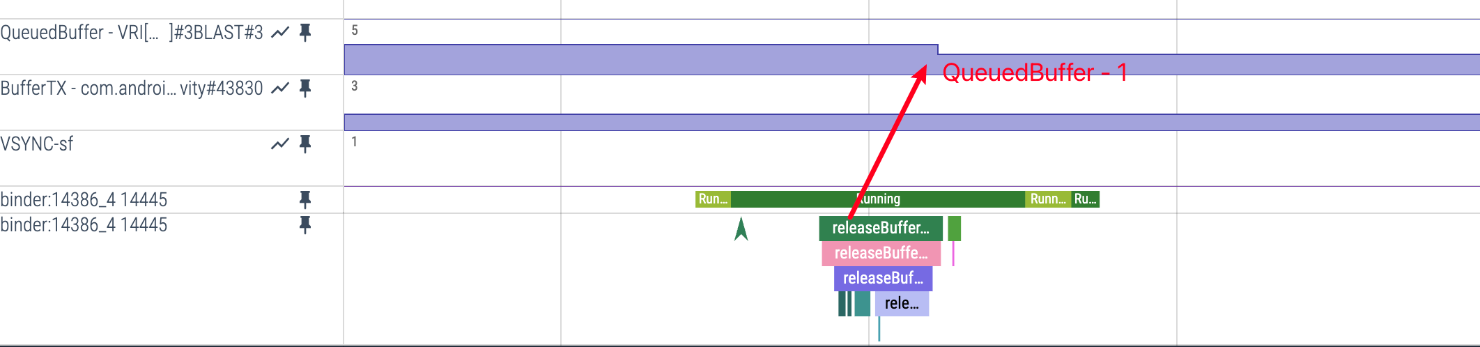 • Perfetto 表现:可观察到 releaseBuffer 相关事件