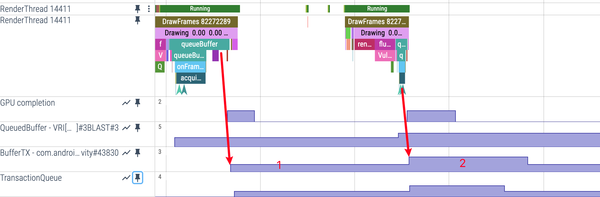• 数值含义:QueuedBuffer 为 2 表示有 1 个 Buffer 在队列中,QueuedBuffer 为 3 表示有 2 个 Buffer 在队列中,以此类推